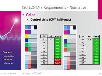 Mục tiêu là nếu bản in thử và quá trình in cũng đúng chuẩn ISO 12647 - 7 hay ISO 12642 thì tự động bản in thật offset giống bản in thử với sai số cho phép. Để một bản in được coi là đúng chuẩn ISO 12647 - 7 hay ISO 12642 thì hệ thống phải trải qua một quá trình kiểm tra và cân chỉnh rất khắt khe.
